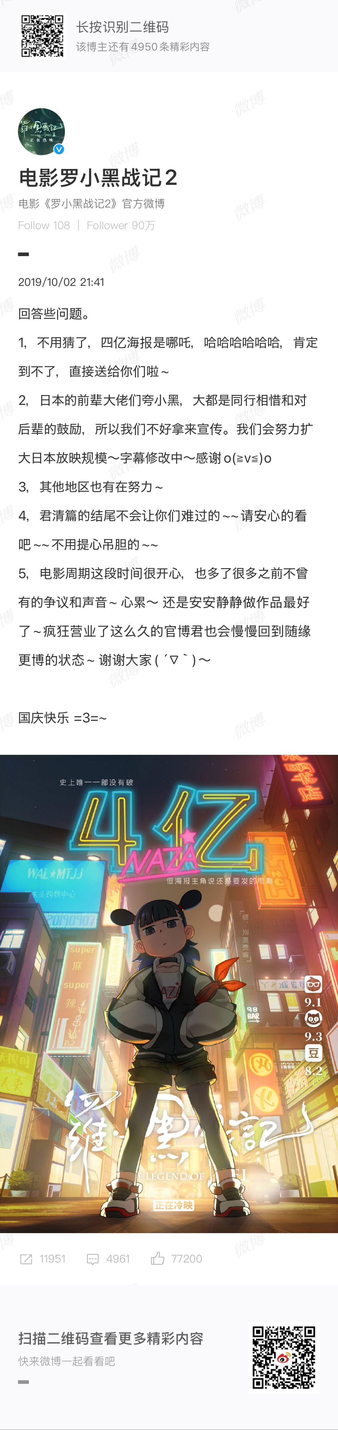 2019.10.02 weibo映画公式アカウント weiboシェア画像から掲載▶︎https://lxh-fan-wiki.site/character/nazha.jpg